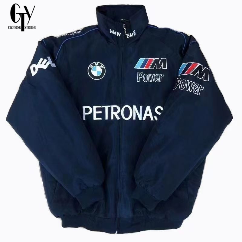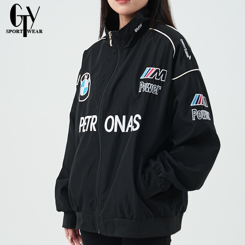 Gty Jaket Vintage Racing Pria Bmw F1 Full Bordir Premium Lengan Panjang Waterproof Parasut Windbreaker Unisex