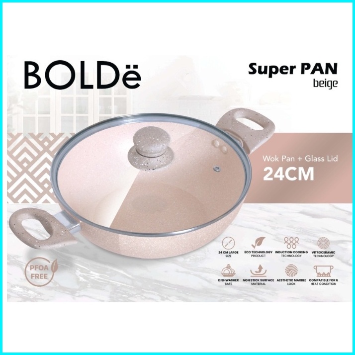 Bolde Super Pan 2 Ear Wok Wajan 24cm Lid Beige