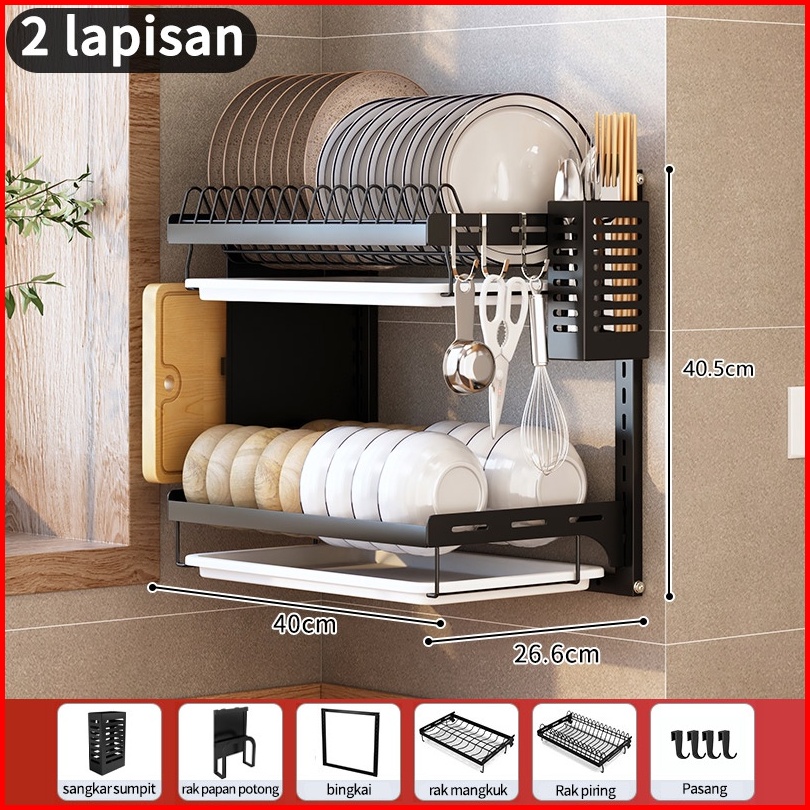 Rak Piring Gantung Rak Dapur Rak Dinding Rak Besi Anti Karat Rak Penyimpanan Mangkuk