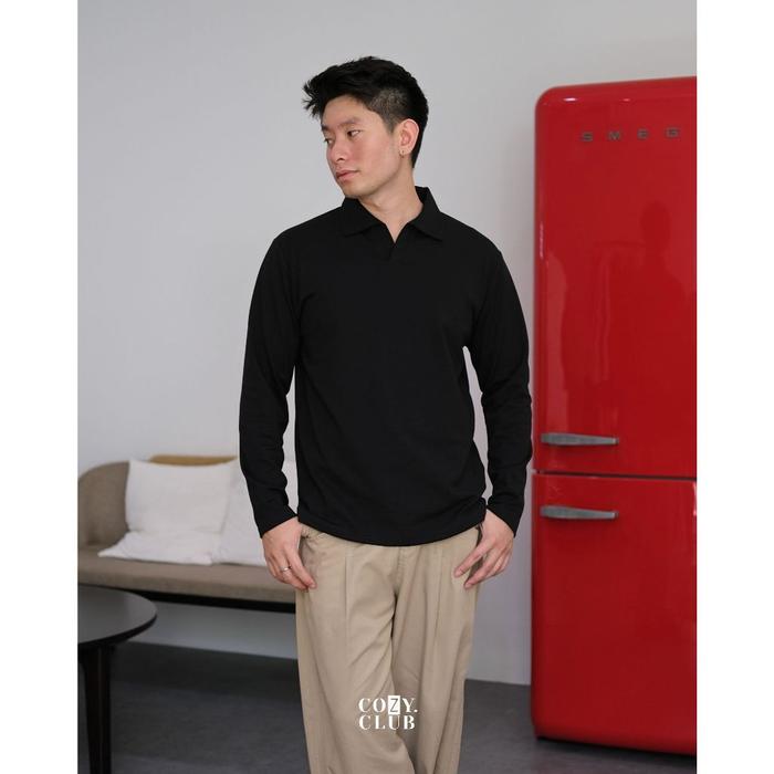 COZYCLUB DUTY LONGSLEEVE REGULAR FIT POLO | KAOS KERAH PRIA LENGAN PANJANG | 2221 - BLACK, S