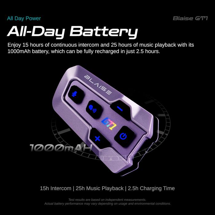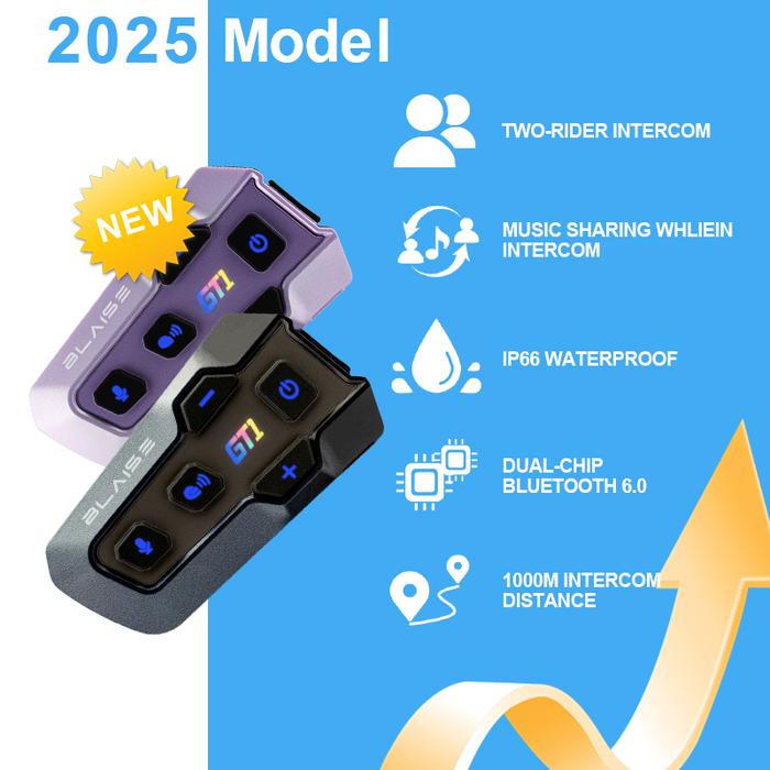 BLAISE GT1 HELM MOTOR INTERCOM HEADSET MUSIK SHARING UNTUK 2 PEMAKAI JARAK 1000 METER BLUETOOTH 5.3 TAHAN AIR RGB ADJUSTABLE BATERAI 22 JAM - EARPHONES - GT1 PURPLE