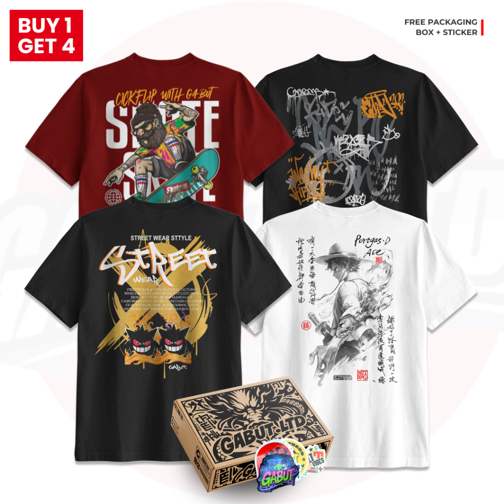 [GABUT] - Paket Bundling 4pcs Baju Kaos Distro Unisex Pria Wanita BDGBT4-003 Bahan Cotton Combed 24s Kaos Oblong Pria Wanita 100 PERSEN Produk Original
