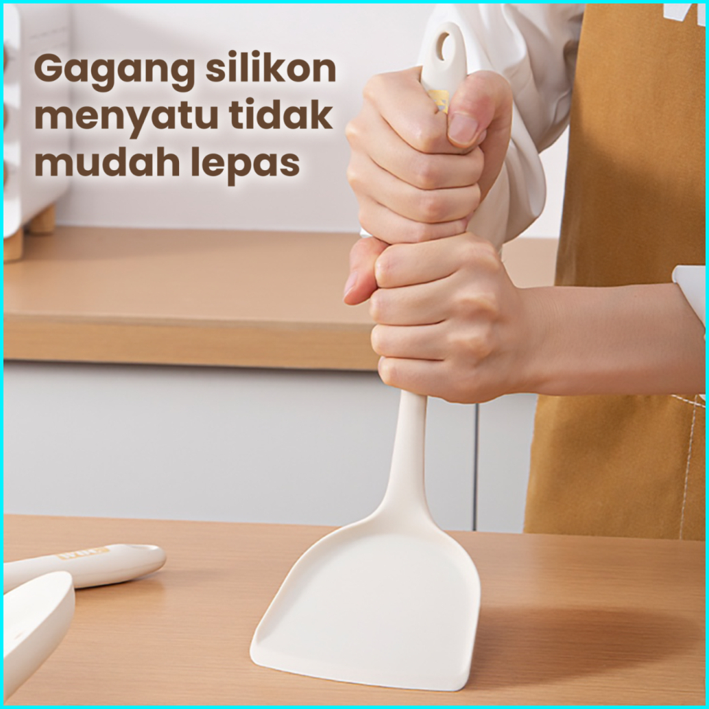 Spatula Silikon Set 3 Pc Wide Sutil Sendok Masak Dapur Modern Tahan Lama Handle Full Silicone