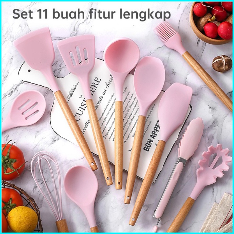 Spatula Set Silicone Tahan Panas Sodet Alat Masak Set 11pcs Cj1