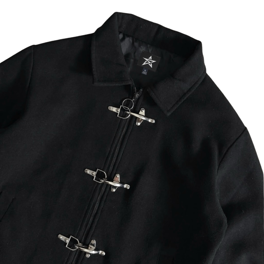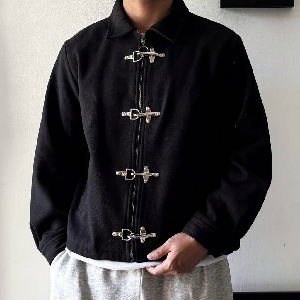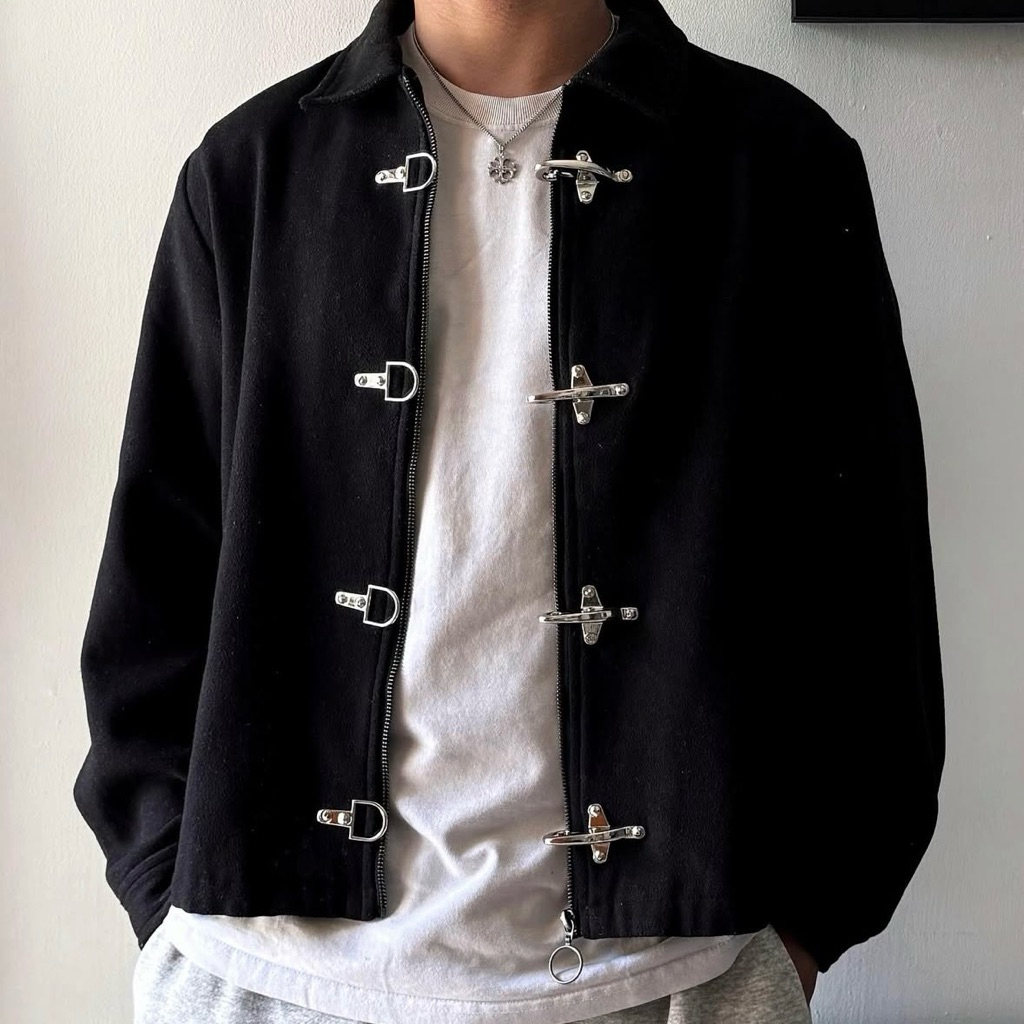 Sai - Corazon Fireman Clasps Style Work Jackets Canvas Boxy Outer Jacket Canvas