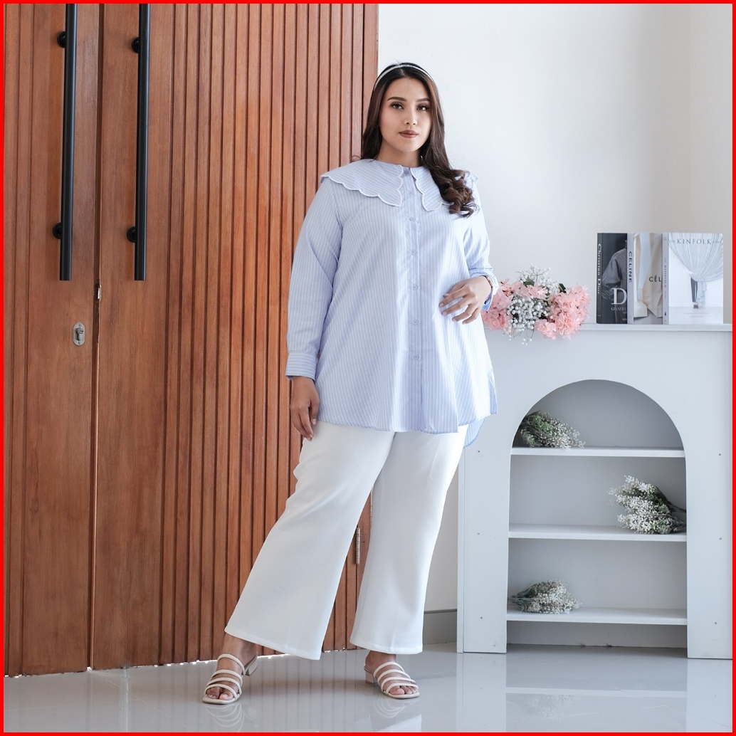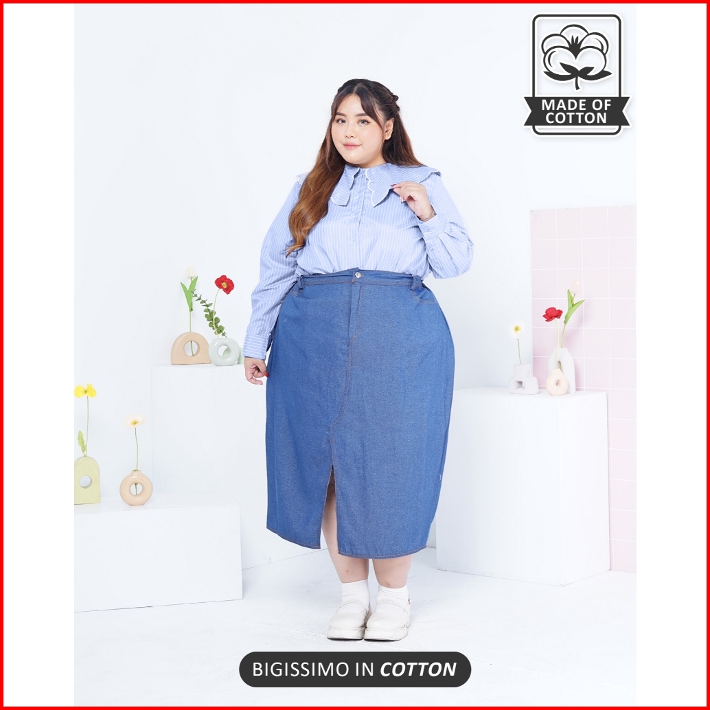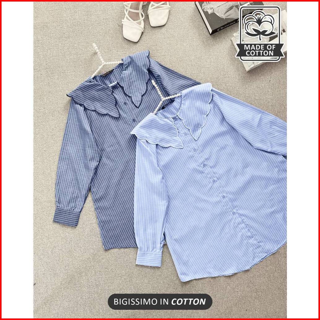 Bigissimo In Cotton - Serena Blouse Atasan Wanita Blouse Stripes Cotton Kemeja Big Size Jumbo Ld 130