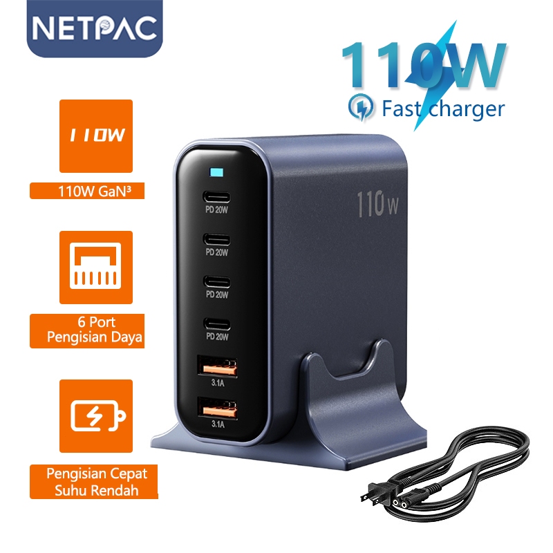 [Star]charger netpac ae19 adaptor desktop multi-ports super fast charging charger station 6 in 1 110w