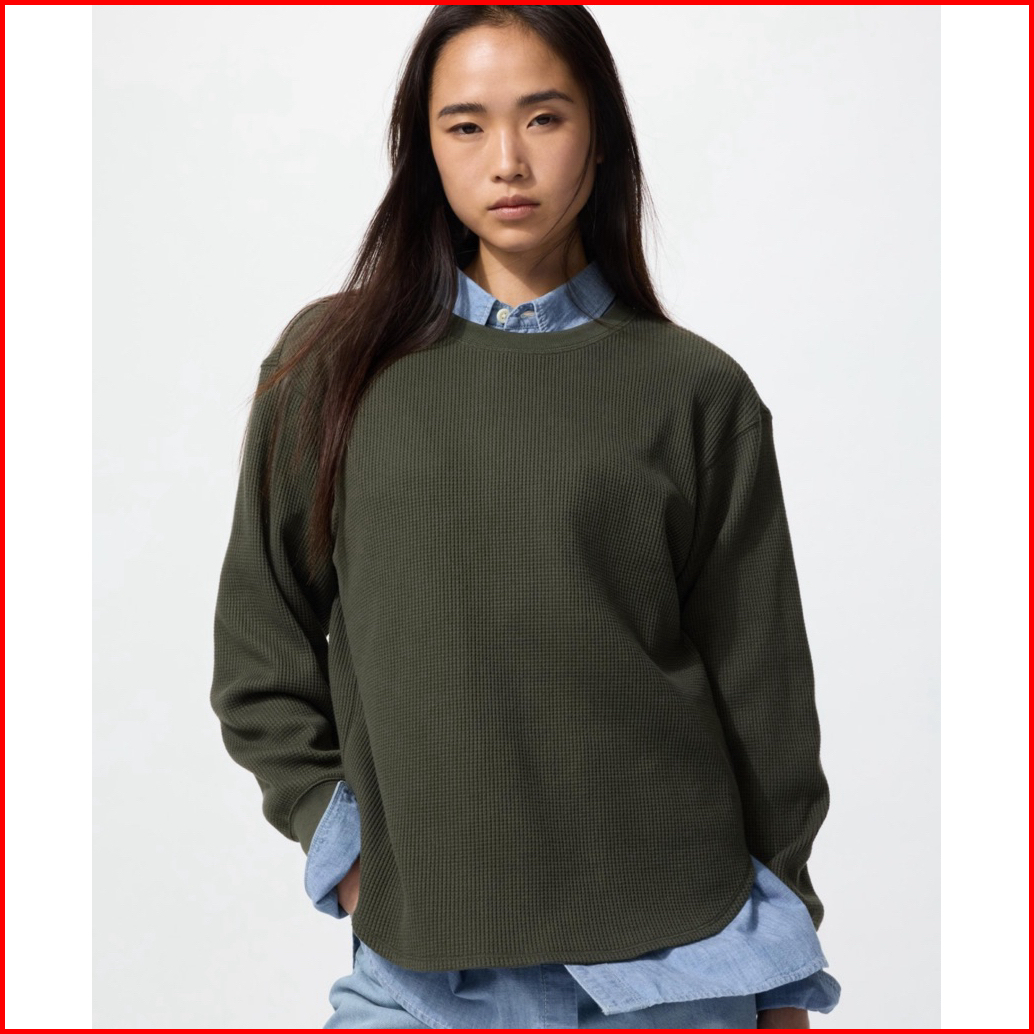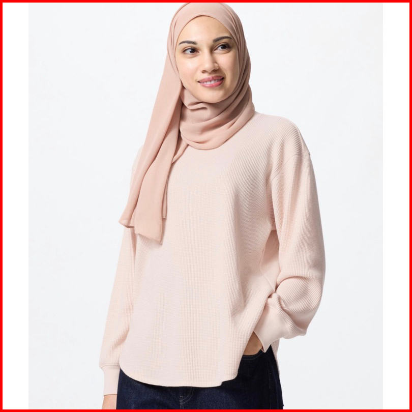 Blouse Waffle Uniqlo Lengan Panjang Original Store Cewek