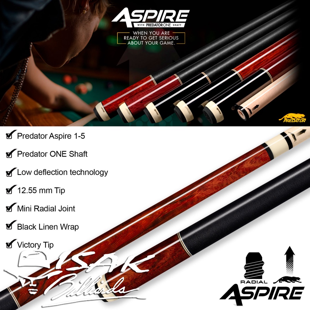 Predator Aspire 1-5 Pool Cue | Low Deflection Radial One Shaft Stick Billiard Asli Usa