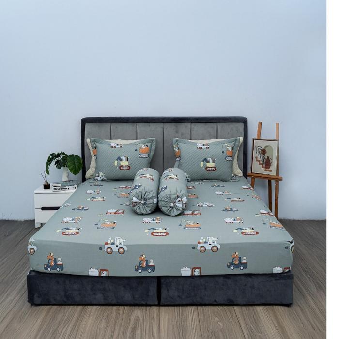 SORAYA BEDSHEET - SPREI KARET KATUN LOKAL KING SIZE180X200 TINGGI 35 CM. MOTIF ABSTRAK,BUNGA DAN SHABBY CHIC- KARET ELASTIS ANTI GESER - BELMONT ABU