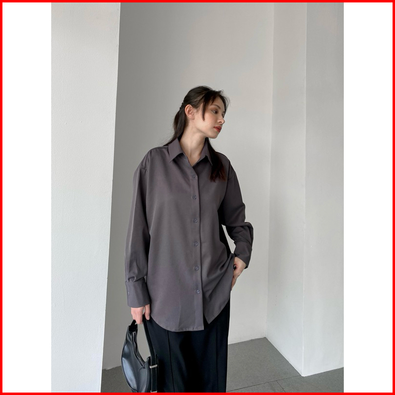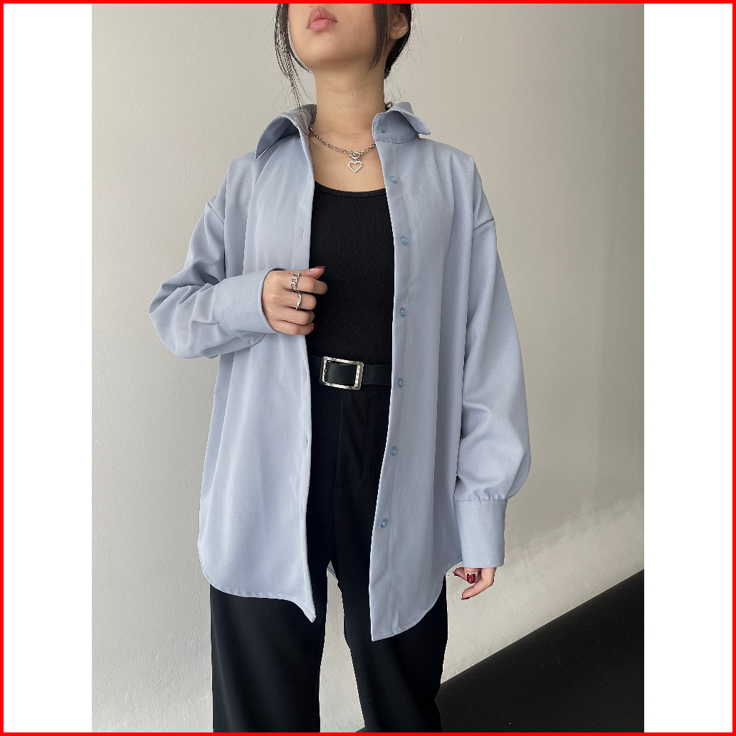Boyfriend Shirt Oversized Shirt Kemeja Oversize Premium Katun Wool Atasan Wanita Lengan Panjang Baju Basic - Casual - Se