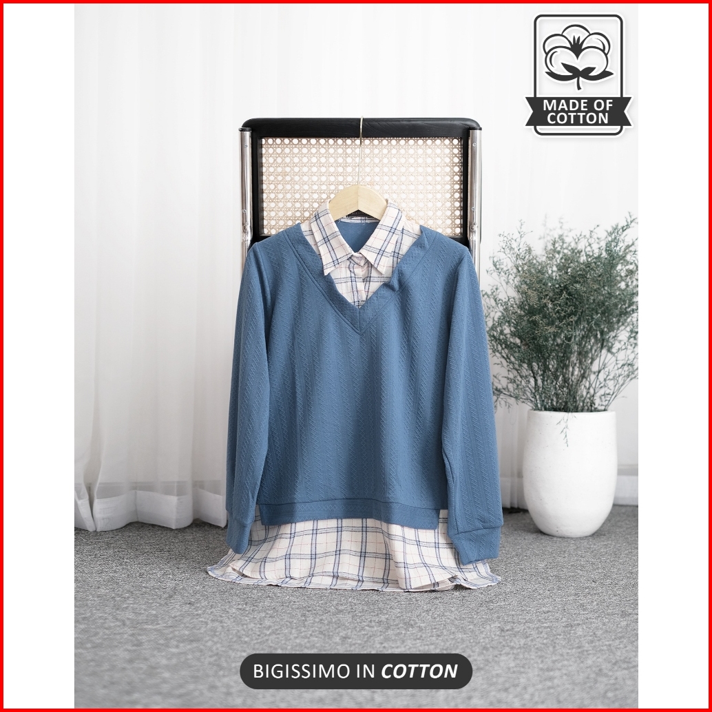 Bigissimo In Cotton - Gizetta Blouse Atasan Wanita Blouse Flanel Big Size Jumbo Ld 130