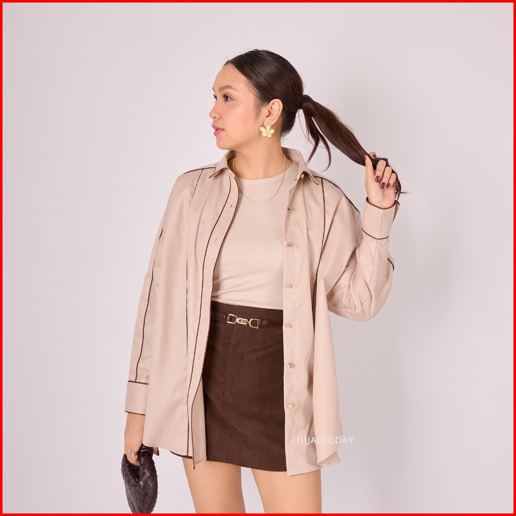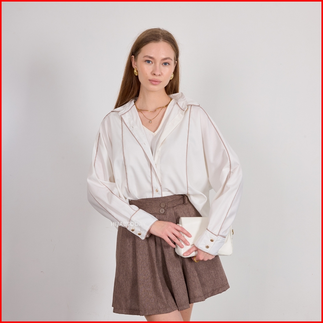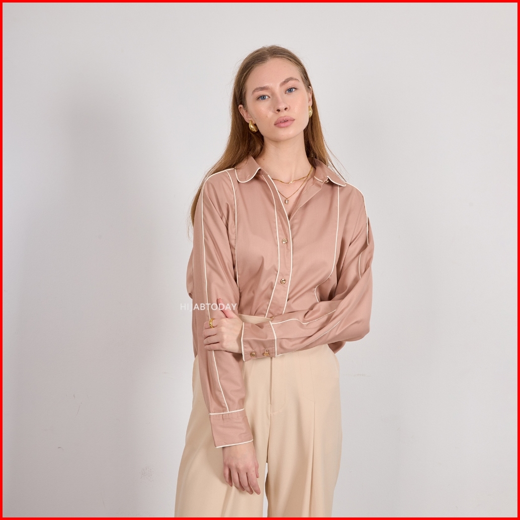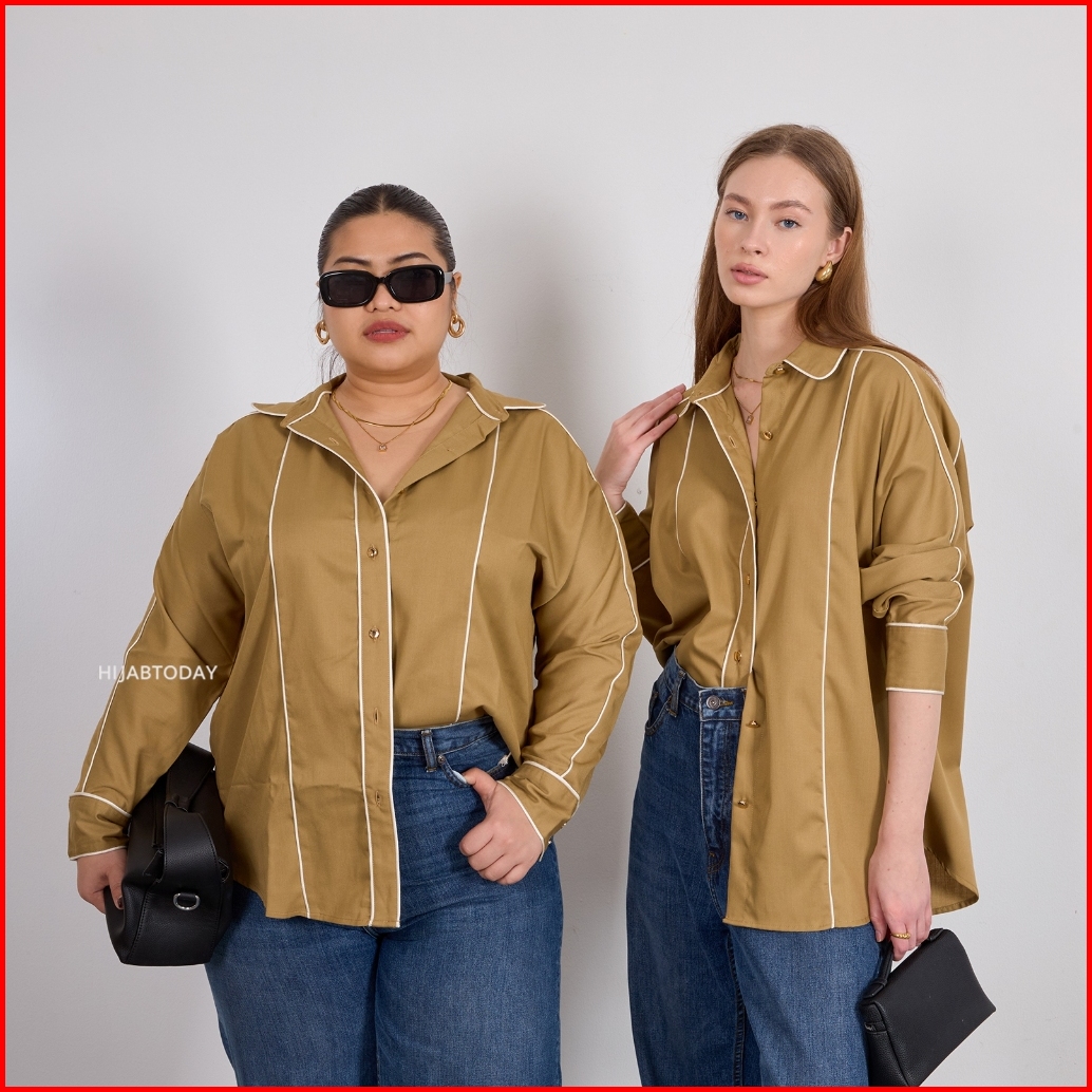 Sindi Shirt Ht By Fashiontoday - Kemeja Premium Wanita Lengan Panjang Detail Bisban Kancing - Bisa Sampai Big Size 100 K