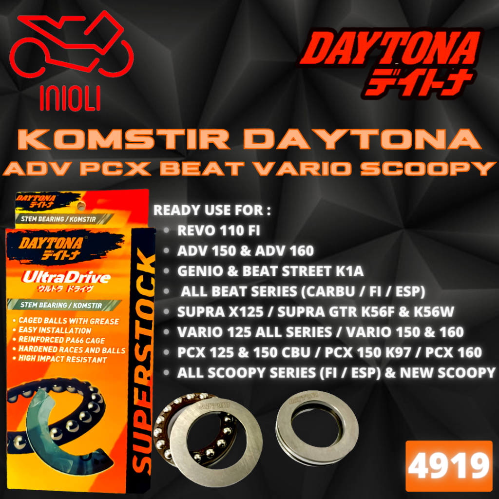 KOMSTIR DAYTONA RACING 4919 VARIO 125 150 PCX BEAT SCOOPY SPACY SUPRA X 125 CS1 BLADE 110 REVO 110 VARIO 110 TECHNO KZL K44 K16 K0J KZR K35 K36 K97 K1Z K2S