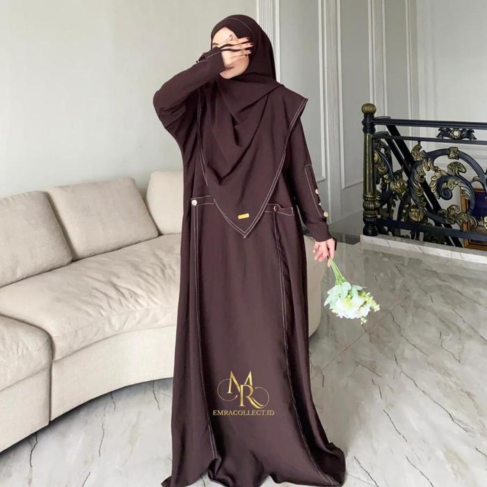 ABAYA RAUDHA SERIES PASHMINABANDANA SET BAJU SYAR'I UMROH GAMIS WANITA ANTI UV PREMIUM - RAUDHA MAHOGANY, SET HIJAB