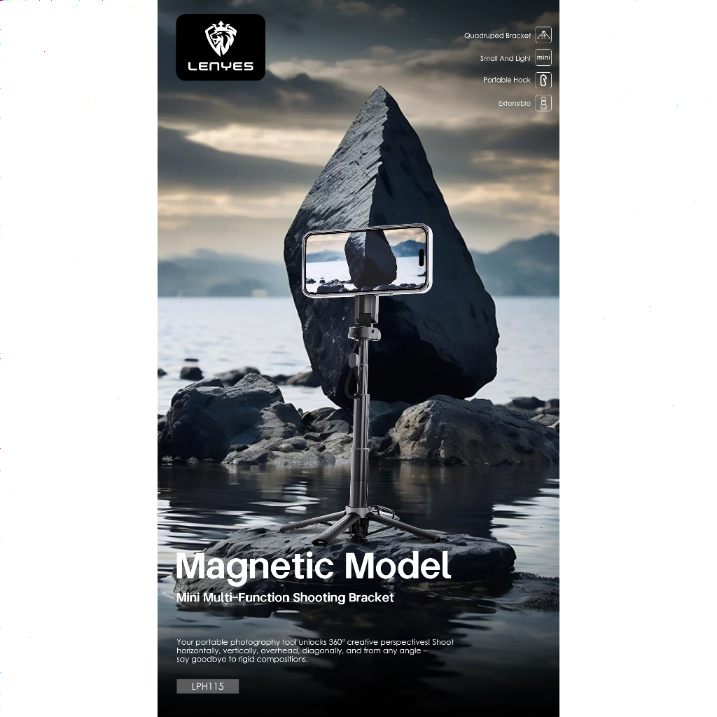 LENYES LPH115 3in1 Magnetic Mini Tripod Selfie Stick Kamera HP With Remote Bluetooth Monopod Portable Tongsis Untuk Hand Phone