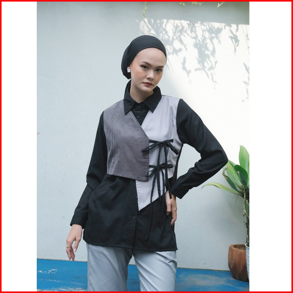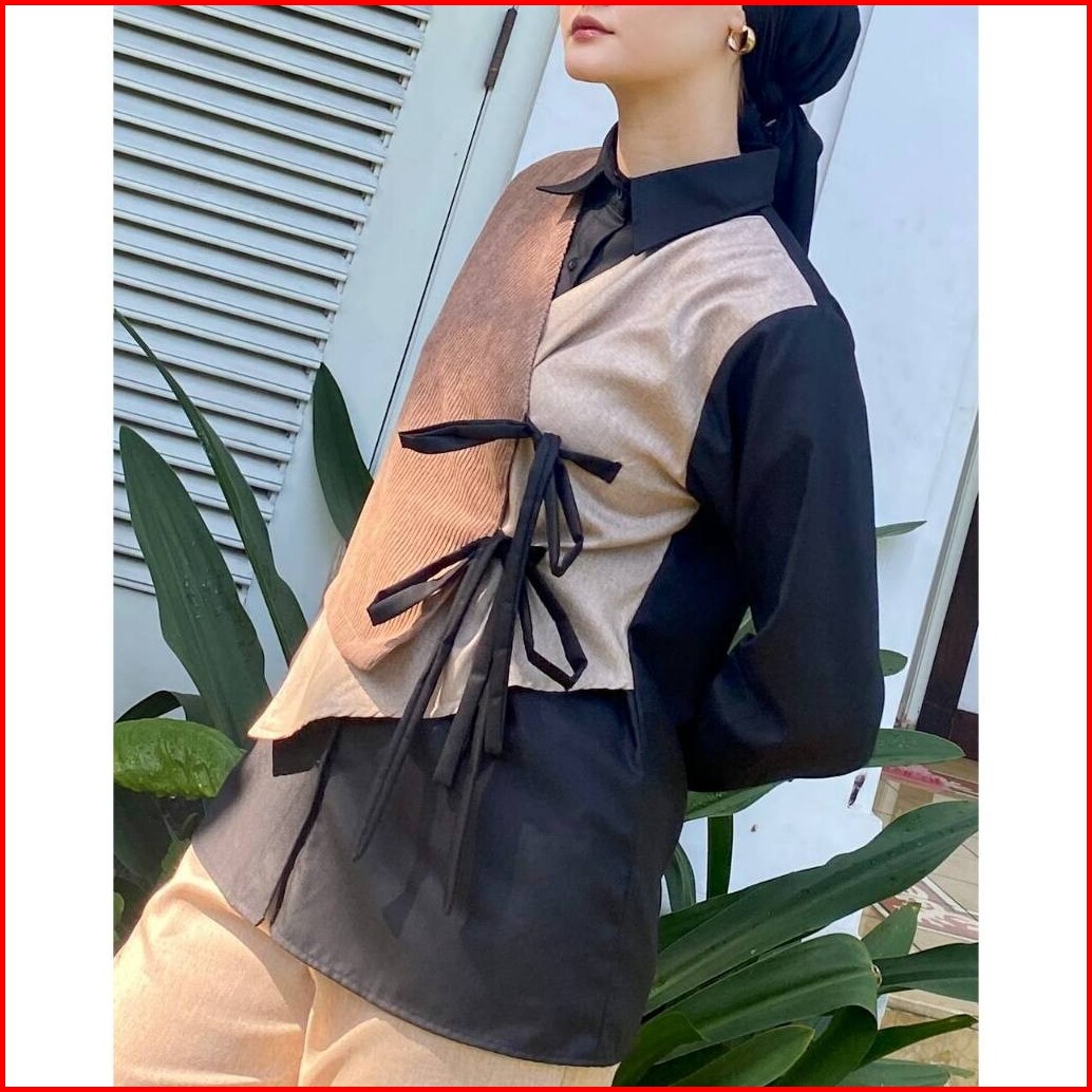 Dya Id - Atasan Kemeja Katun Wanita Nabila Black And Brown L-3xl