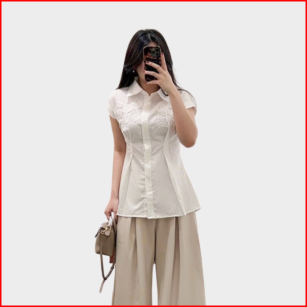 Tasy Bloom Embroidery Blouse Wanita Katun Minimalis