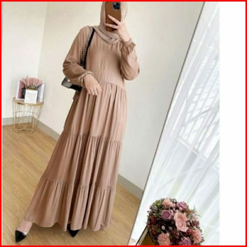 Gamis Wanita Muslim Susun Polos Bahan Rayon Premium Ukuran Setandan Jumbo Hanum Dress Maxy Syari