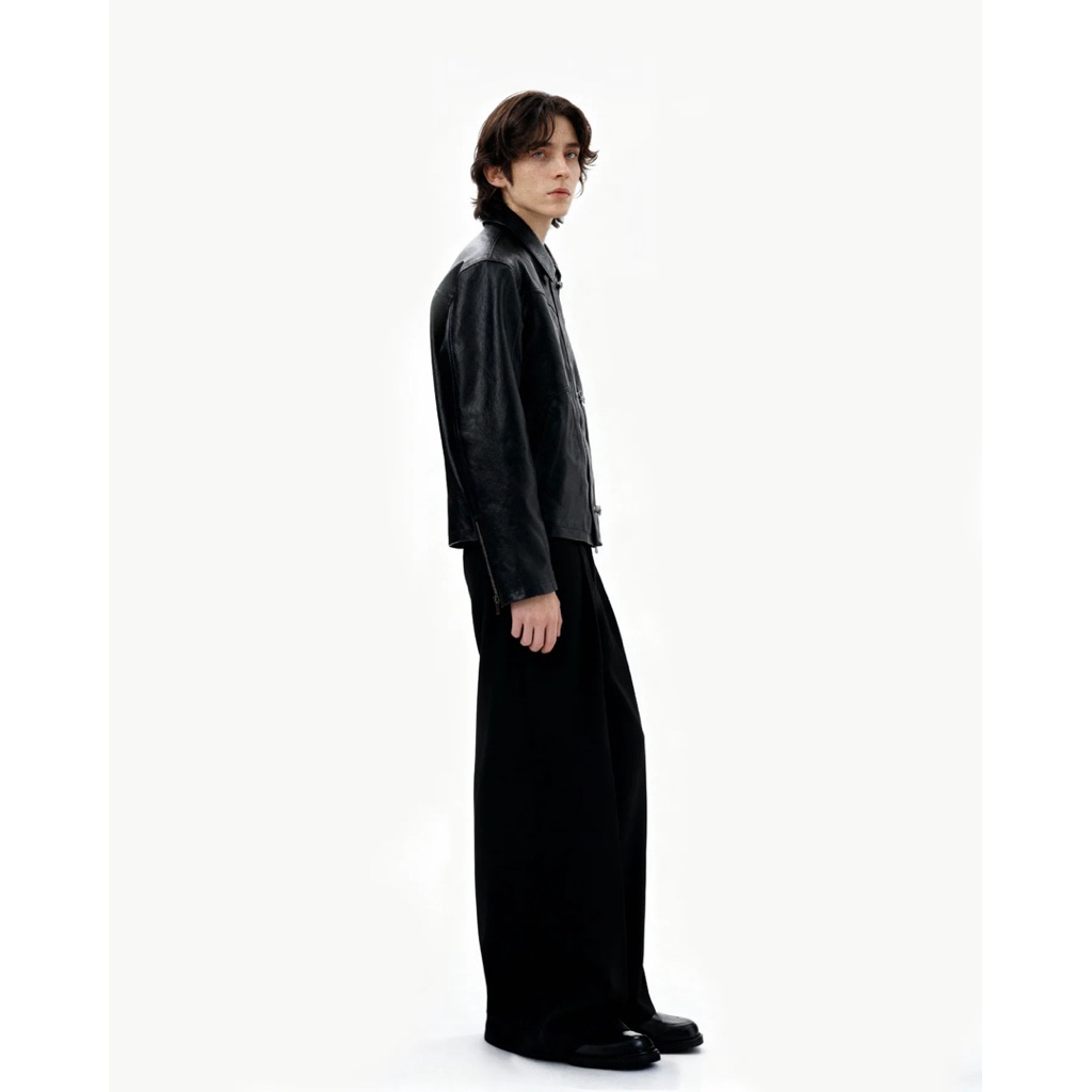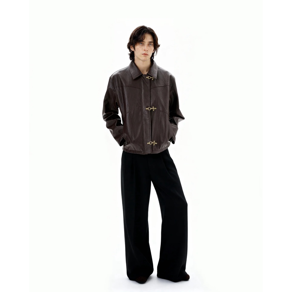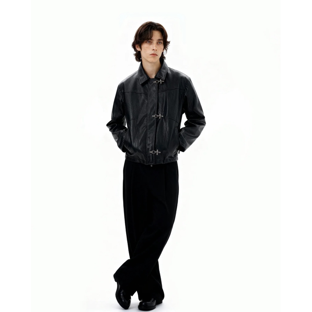 Sai - Amore Fireman Clasps Buckle Mid-Crop Faux Leather Jacket Clasps Style Work Jackets Boxy Outer