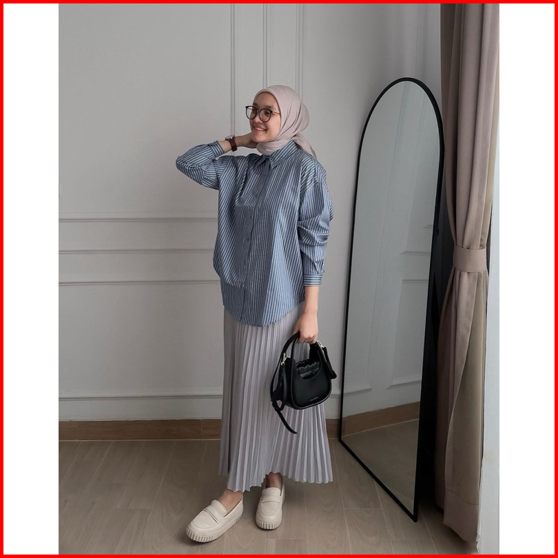 Tukubuu - Nilam Kemeja Stripes Katun Stripes Tshirt Cotton Shirt Kemeja Salur Wanita Kemeja Katun Pakaian Wanita Striped