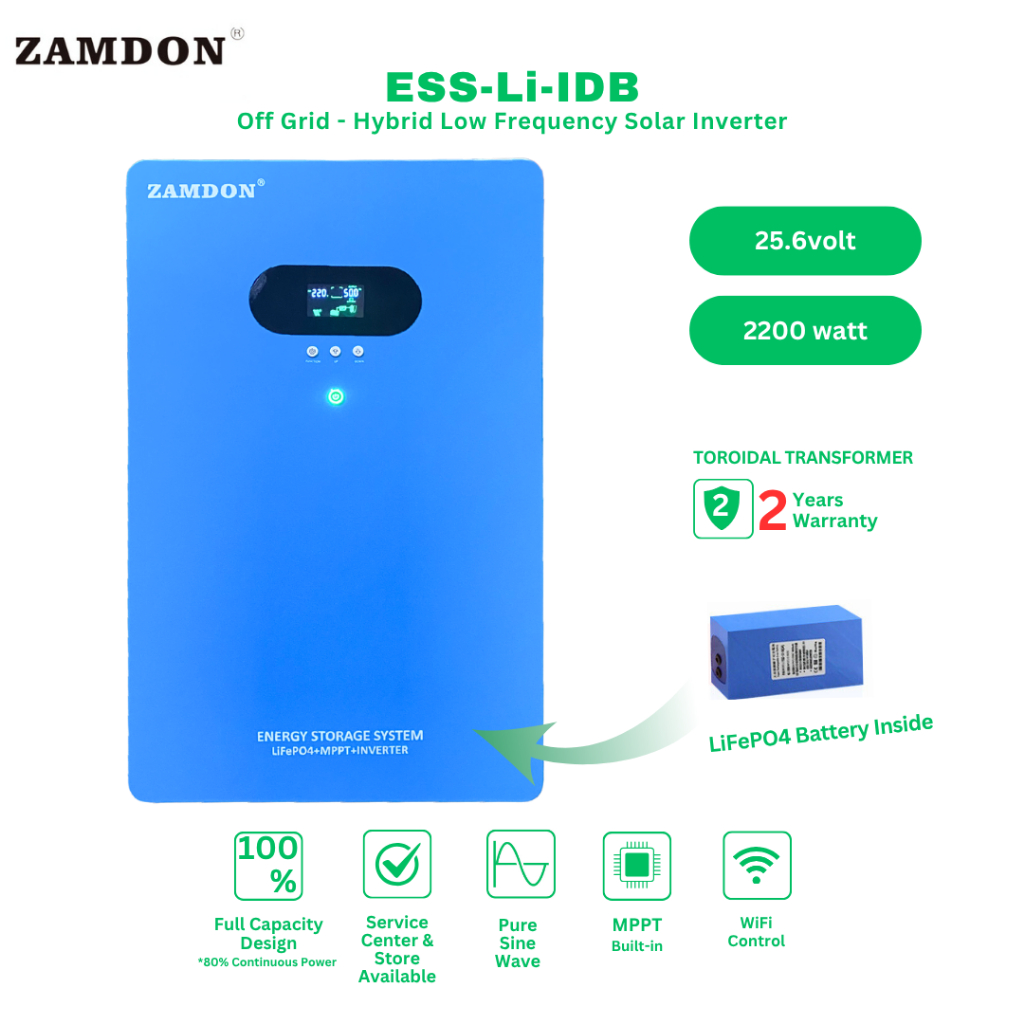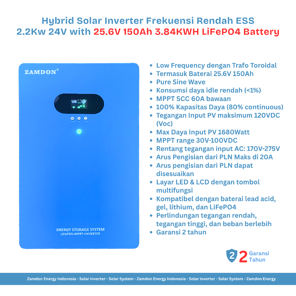 ZAMDON Frekuensi Rendah Off Grid Hybrid Solar Generator / Pembangkit Listrik Portabel Built-in 2.2KW 24V Solar Inverter,