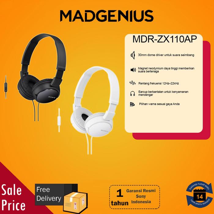 SONY ORI MDR-ZX110AP / MDR ZX110AP / MDRZX110AP / ZX110 WHITE HEADSET