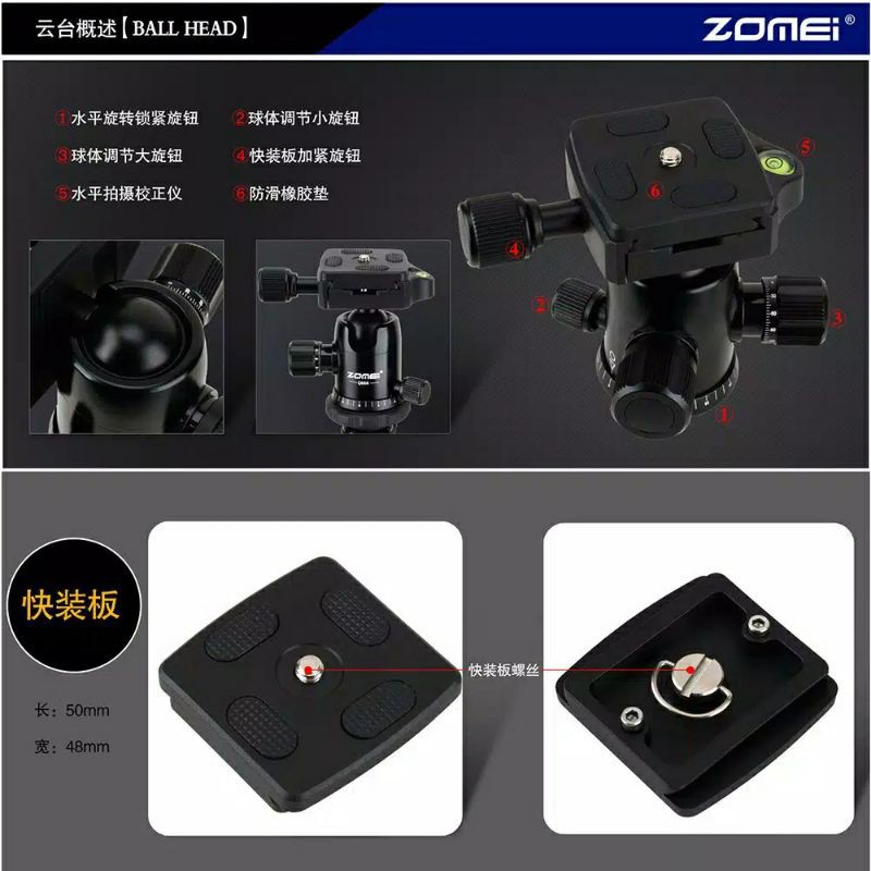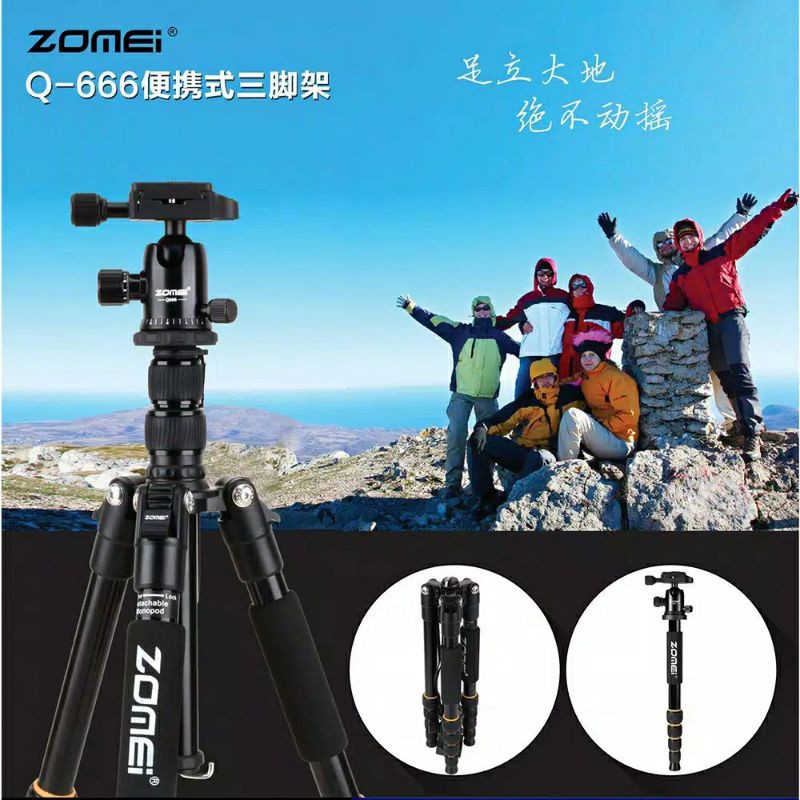 TRIPOD MONOPOD ZOMEI Q666 WITH BALLHEAD PROFESIONAL KAMERA DSLR MIRRORLESS VLOGGER