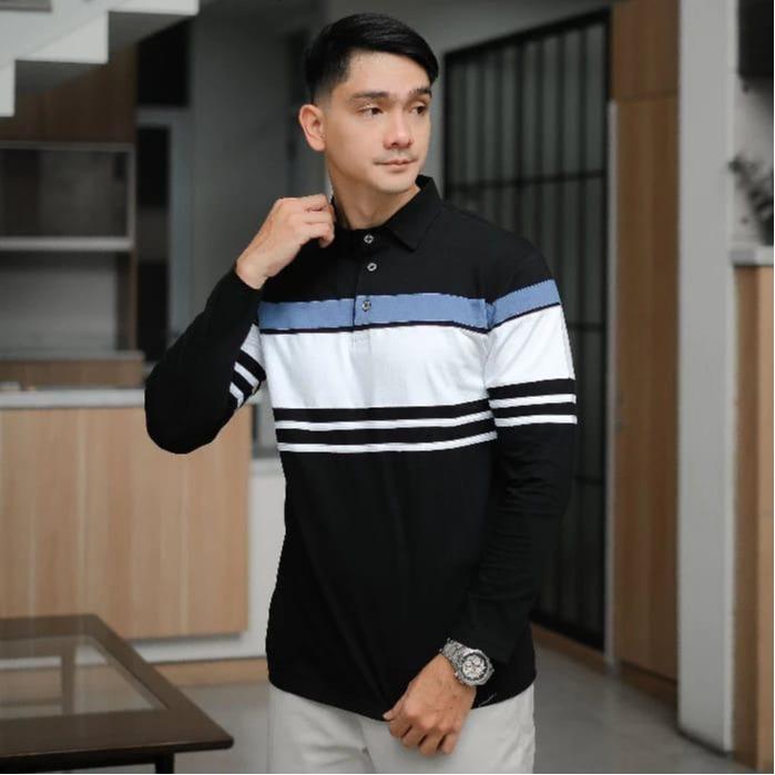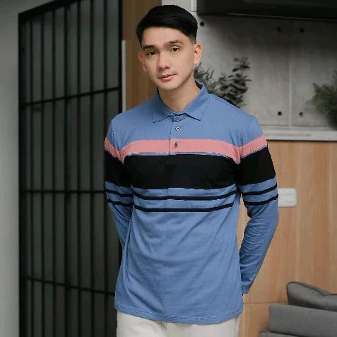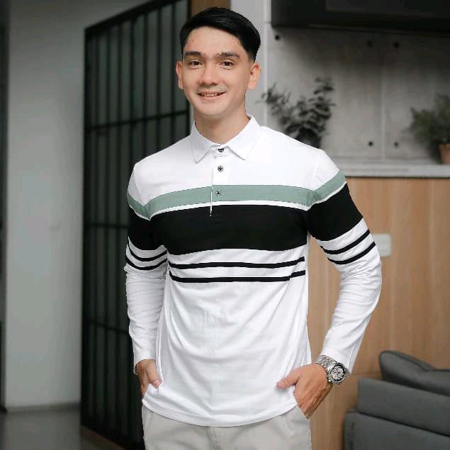 BAJU PRIA KAOS KERAH TANGAN PANJANG MOTIF KOMBINASI /POLO SHIRT COTTTON COMBED 24S CASUAL HIJAU HITAM KAIN KANCING PINK PUTIH - HIJAU SAGE, S
