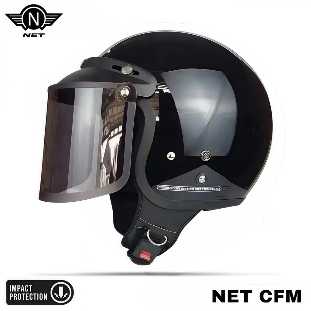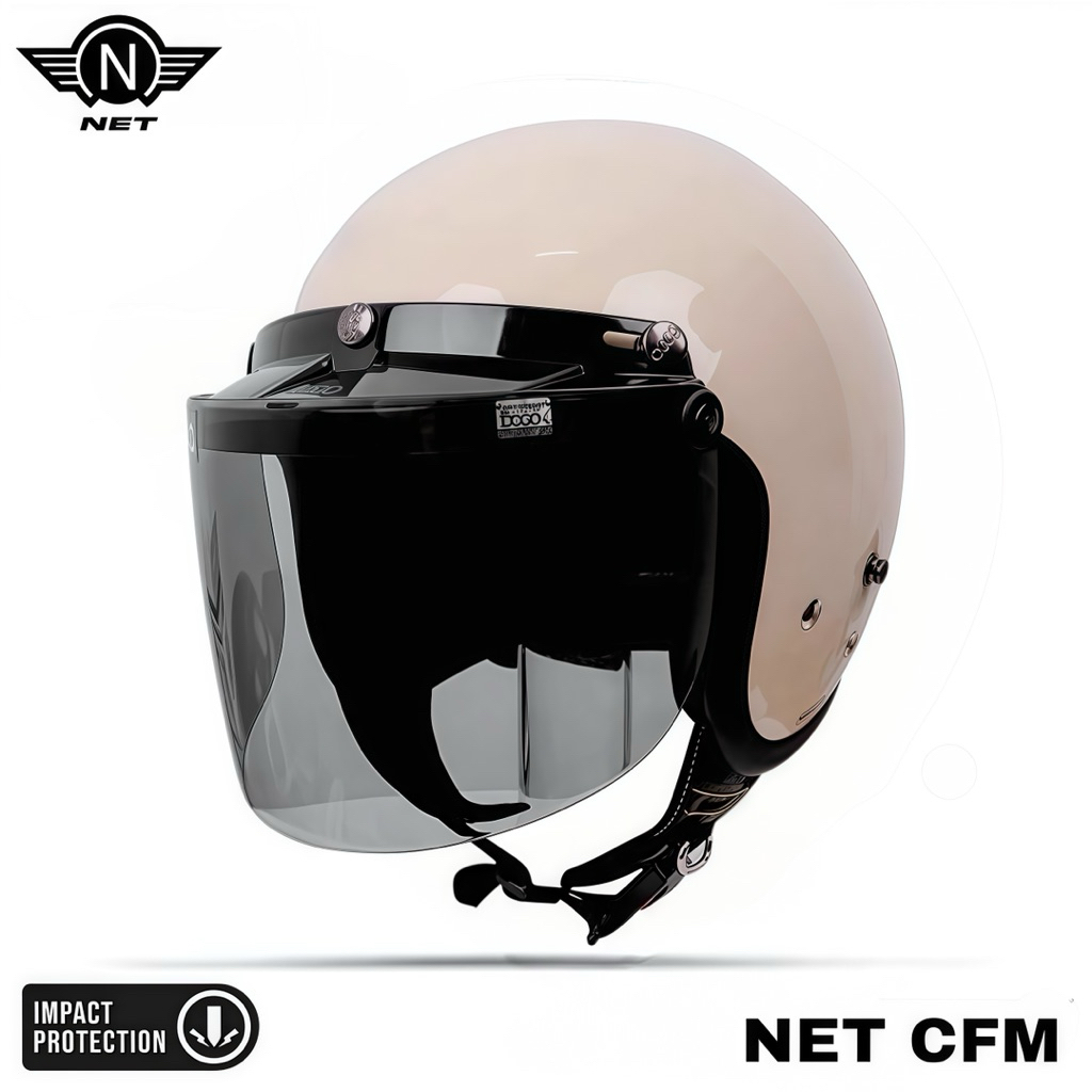 NET – Helm Bogo Retro CFM Polos DEWASA Kaca Datar SNI Motorcycle