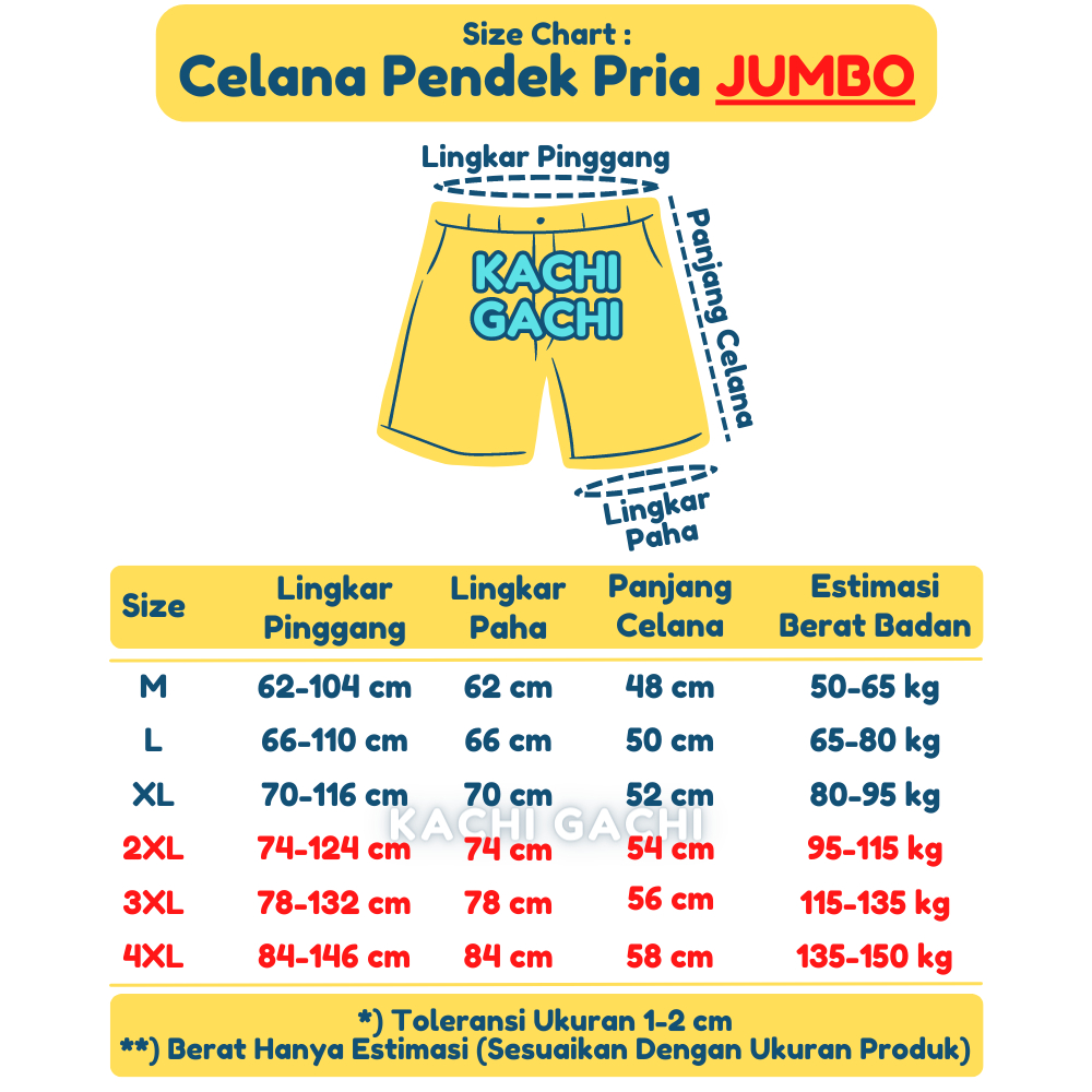 Celana Pendek Jumbo Pria / Celana Kolor Pria Santai / Short Pants Pria Big Size - Kachi Plain