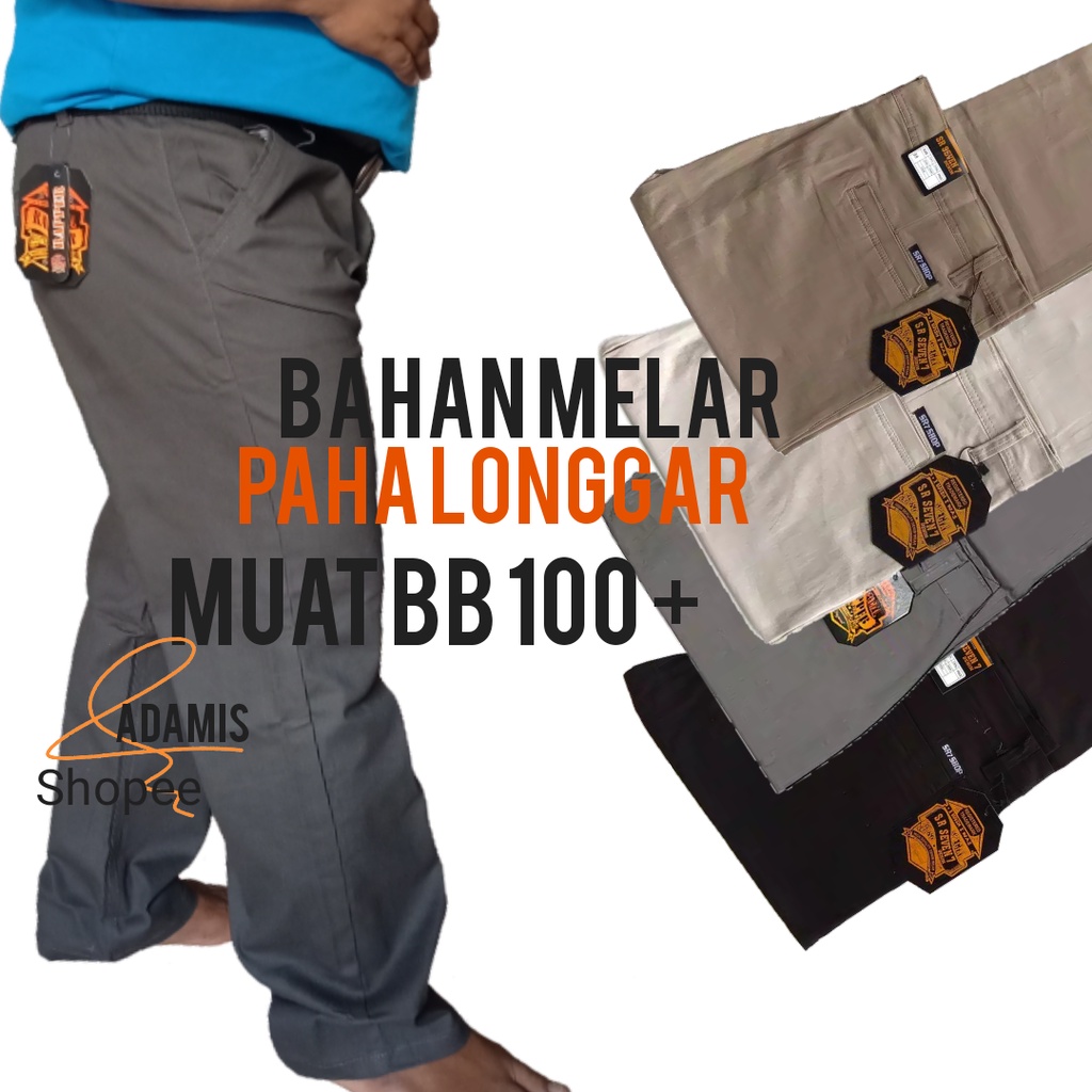 Celana Chino Panjang Pria Formal Big Size Super Jumbo Reguler Longgar 33-50 Bahan Chinos Melar Paha Longgar
