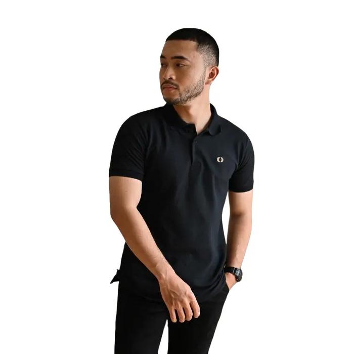 BROODIS KAOS POLO COMFY BLACK T-SHIRT SHIRT PRIA SIGNATURE BAJU PENDEK COWOK KATUN CASUAL FIT KERAH - BLACK, M