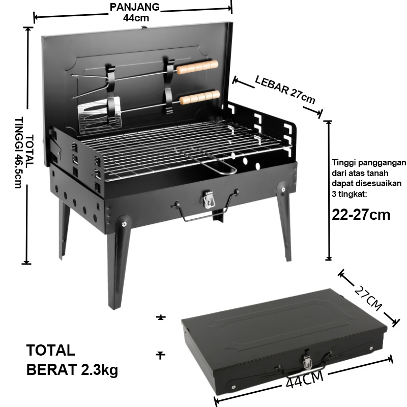 Alat Panggang BBQ Portable Lipat Folding Grill Stove Camping Outdoor Pemanggang Ikan Ayam Sosis Sate Daging