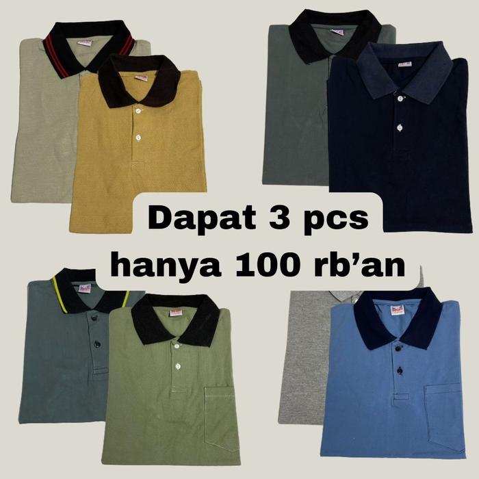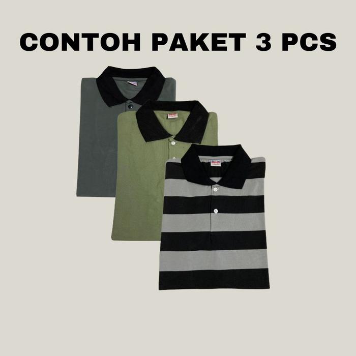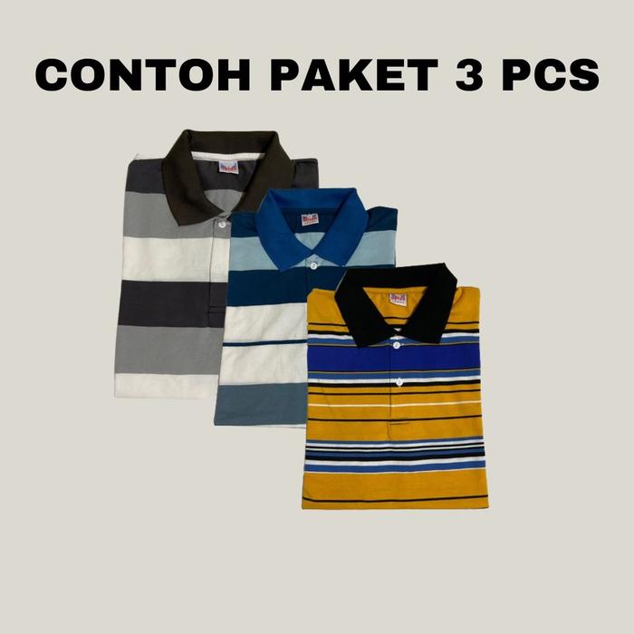 [RANDOM] [DAPAT 3 PCS] KAOS SALUR POLO STRIPE PRIA WANITA BERKERAH MURAH DAN BERKUALITAS DEWASA BAJU DISTRO - SALUR CERAH 3 PCS , L