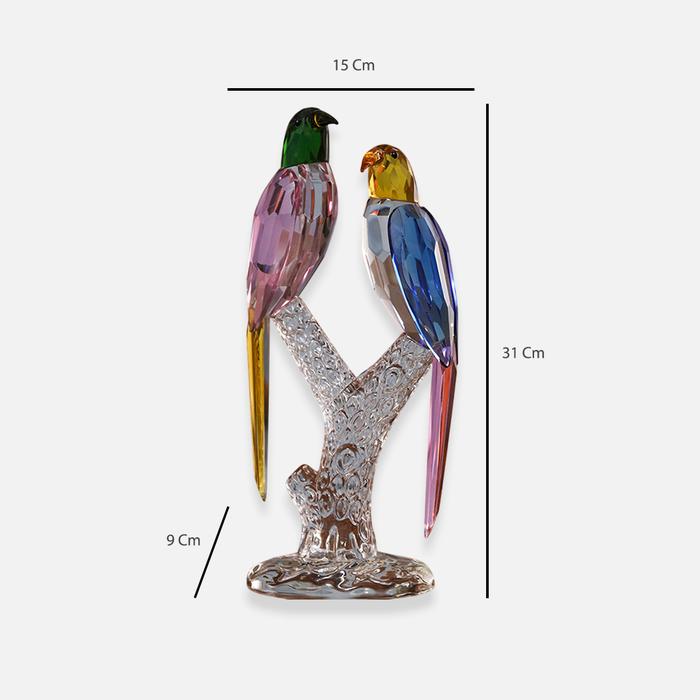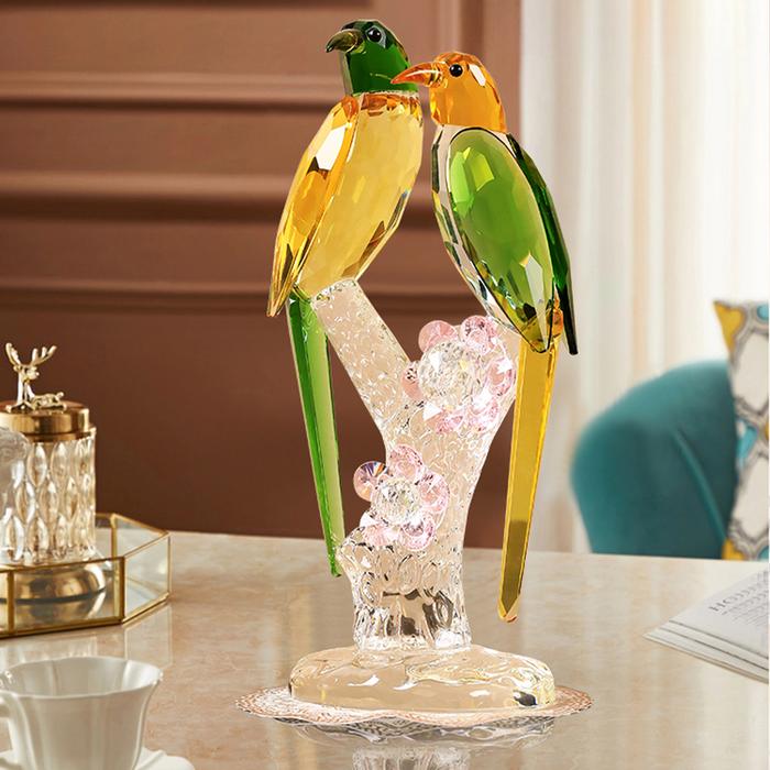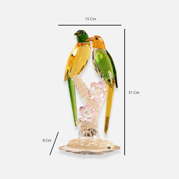PAJANGAN MEJA BURUNG GLASS HIAS / COUPLE CENARY ON FLOWER BRANCH CRYSTAL DECORATION EB HOME 4806 - YELLOW-GREEN