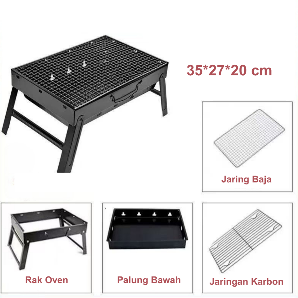 Steelicious.id - Alat Panggangan BBQ Portable 35CM 43CM Grill Daging Ayam Ikan Sosis SKL02