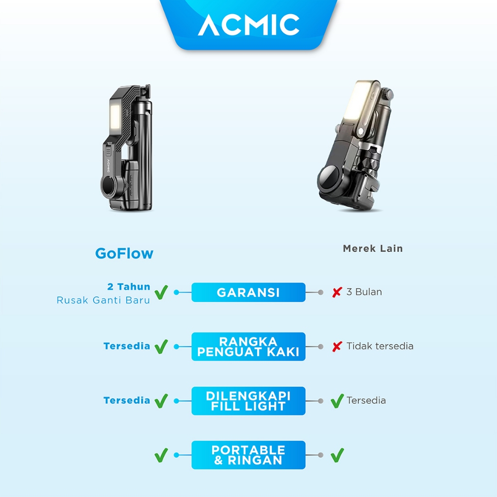 [New Launch] ACMIC GOFLOW Stabilizer Gimbal Quadrupod Selfie Stick Tripod Quadpod 4 Kaki Fill Light 1M (100cm)