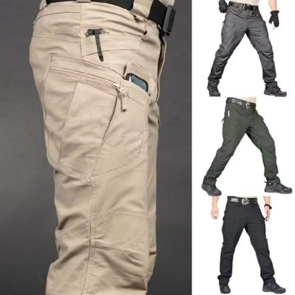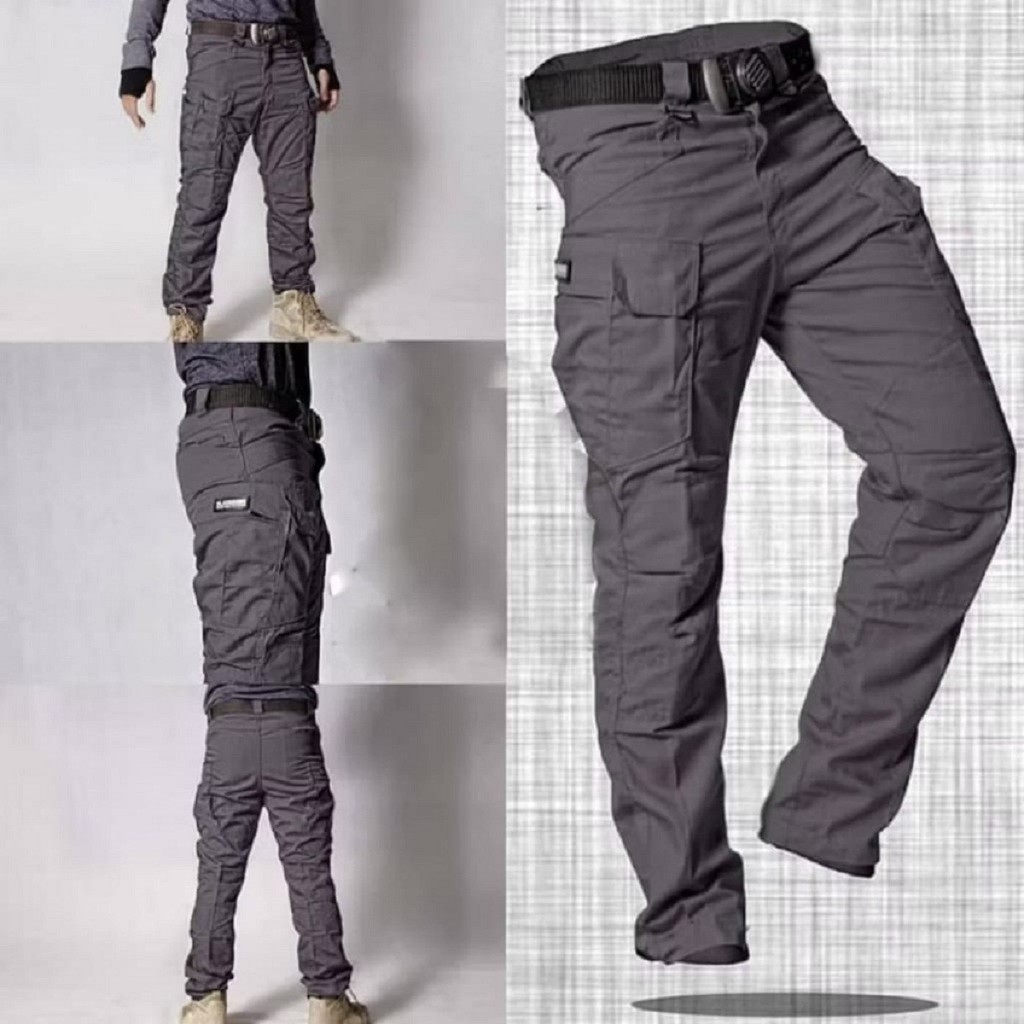Celana Panjang Outdoor Cargo / Tactical / Pdl Pria Dewasa, Hitam/Abu-Abu/Cream 1992