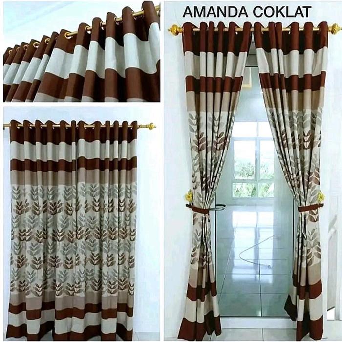 PAKET HEMAT ISI 5 PCS GORDEN PINTU DAN JENDELA MOTIF AMANDA BAHAN TEBAL MURAH MERIAH - AMANDA ABU, 220 X 135 (R12)