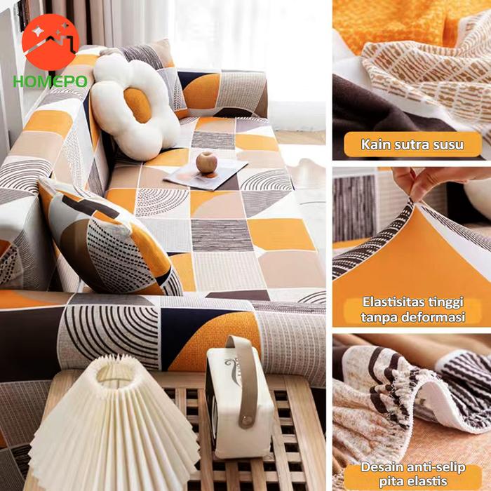 ELASTIC COVER SOFA SARUNG SOFA 3 SEATER PATTERN MOTIF MENARIK ANTI-SELIP PENUTUP SOFA SARUNG BANTAL SOFA COVER L SHAPE - GEOMETRI KLASIK, 4-SEATER(92-118'')