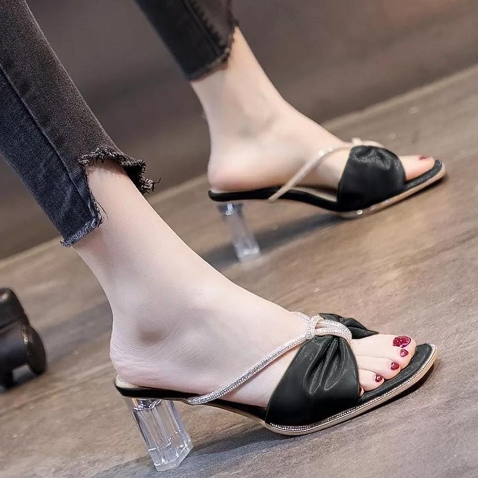 AURORA - High Heels ADREENA Sandal Wanita Hak Tinggi Sepatu Kaca Kerut Permata Cantik