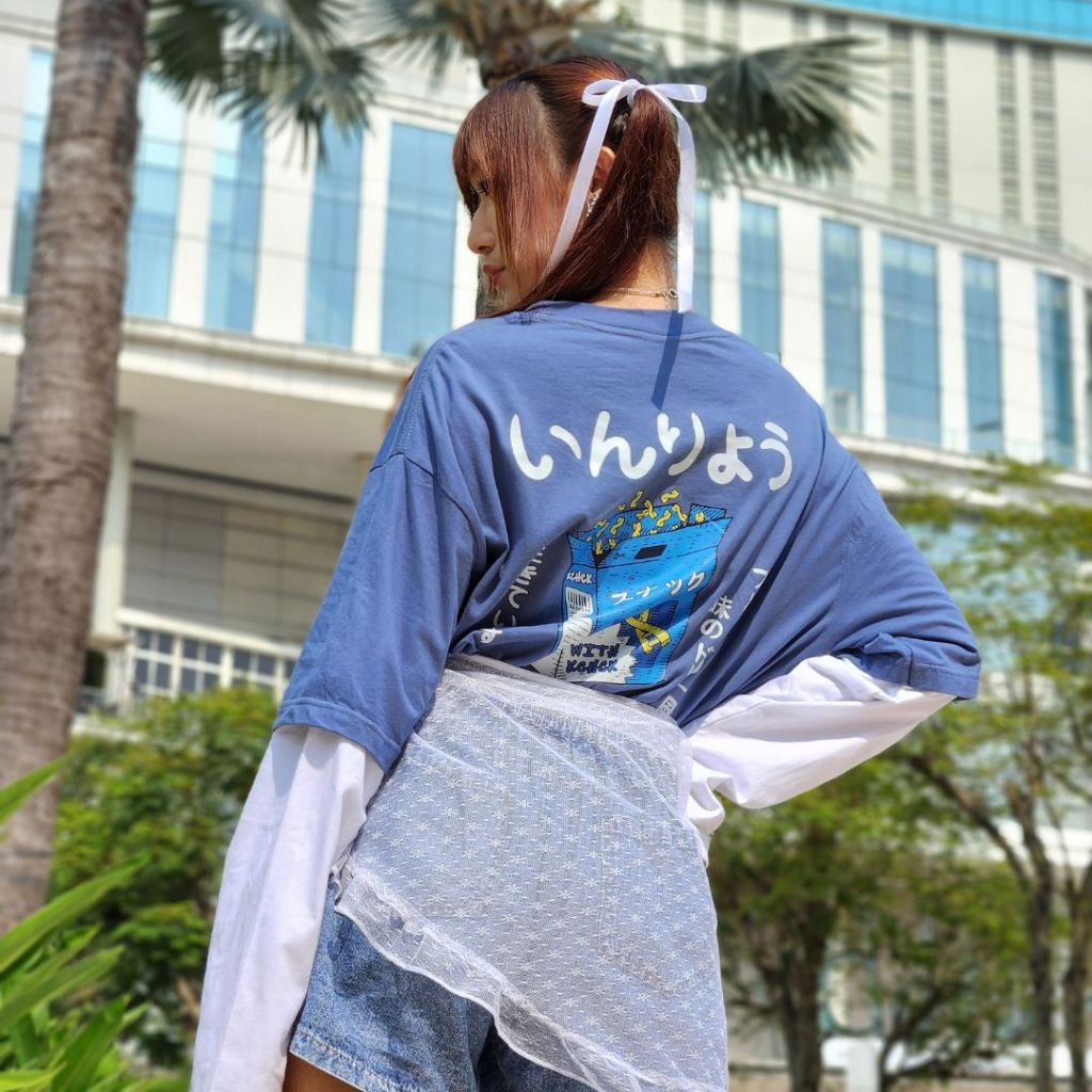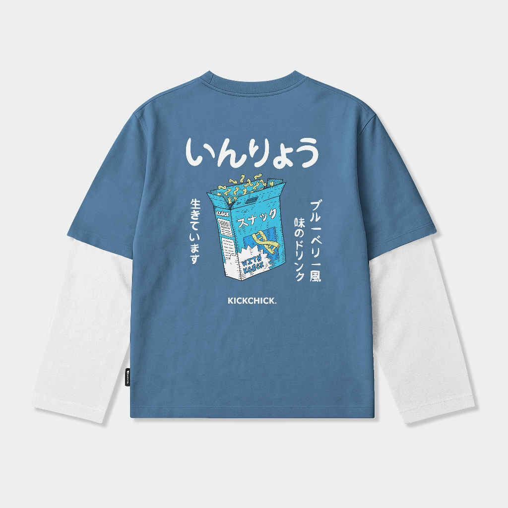 Kickchick Double Sleeve Nibble Steel Blue | Kaos Oversize | Lengan Panjang Unisex Kcds011