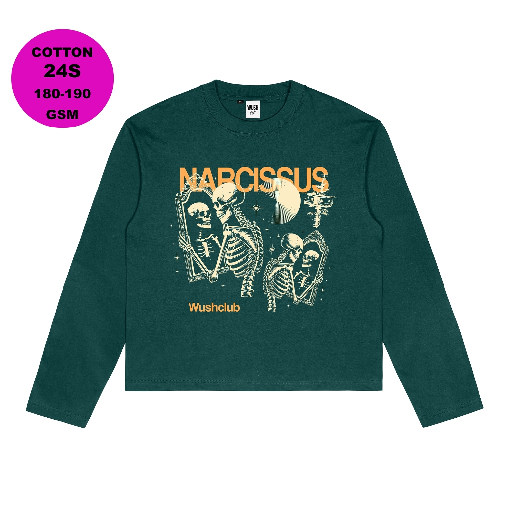 Wush Club Baju Kaos Boxy Longsleeve Pria Wanita Oversize Lengan Panjang Narci Hijau Botol