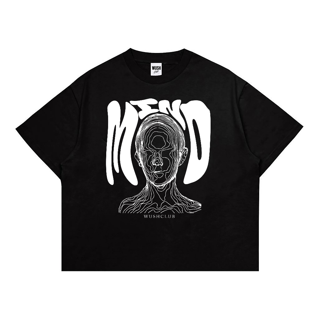 Wush Club Boxy Fit Tee Baju Kaos Distro Pria Wanita Oversize Cotton Combad 24S Deep Hitam