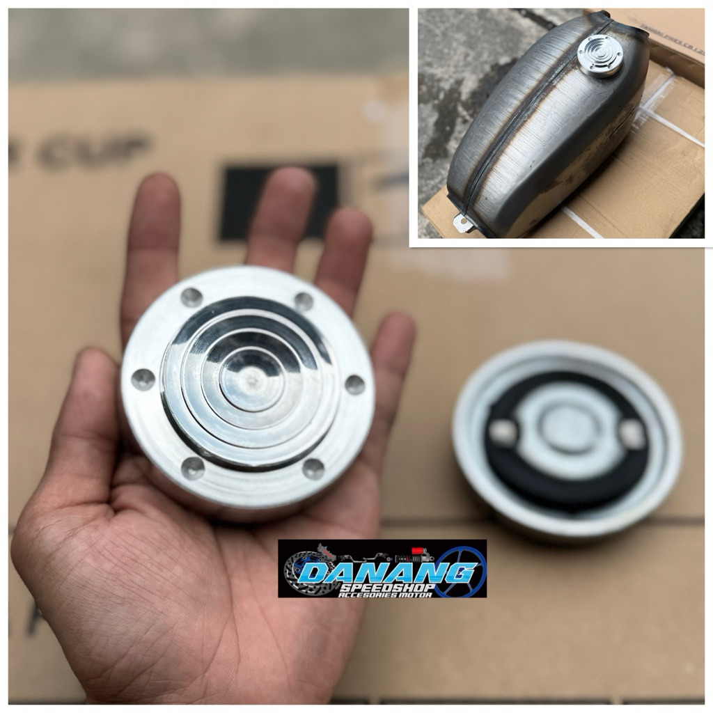 Tutup Tangki CB 100 CB 125 GL 100 Mdel CNC Motif Spiner Bahan Almunium Anti Karat