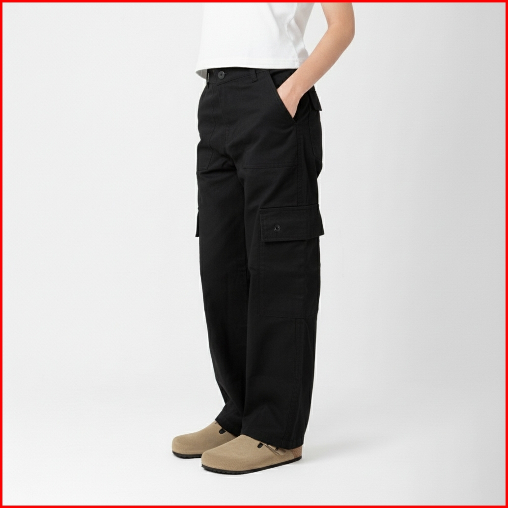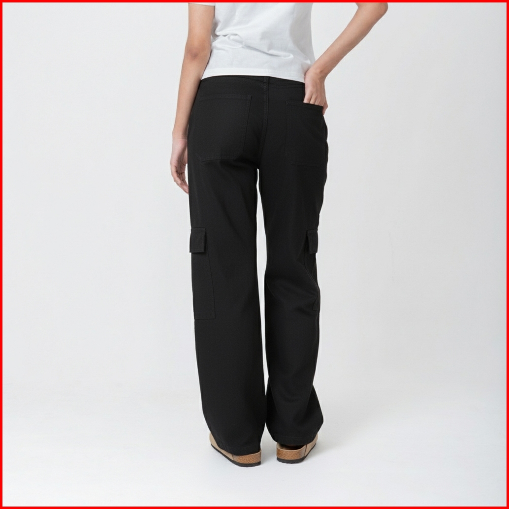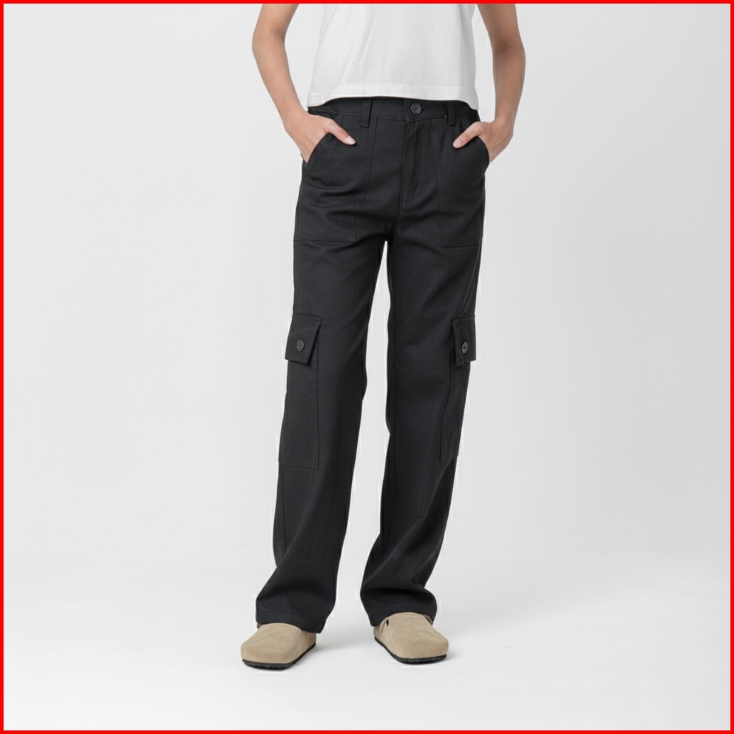 Fairgoods Celana Wanita Loose Cargo Pants Twill Navia Black