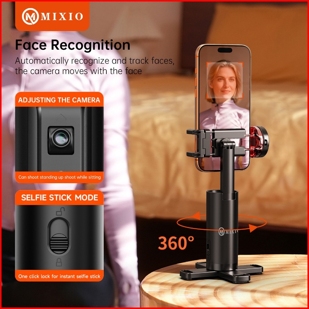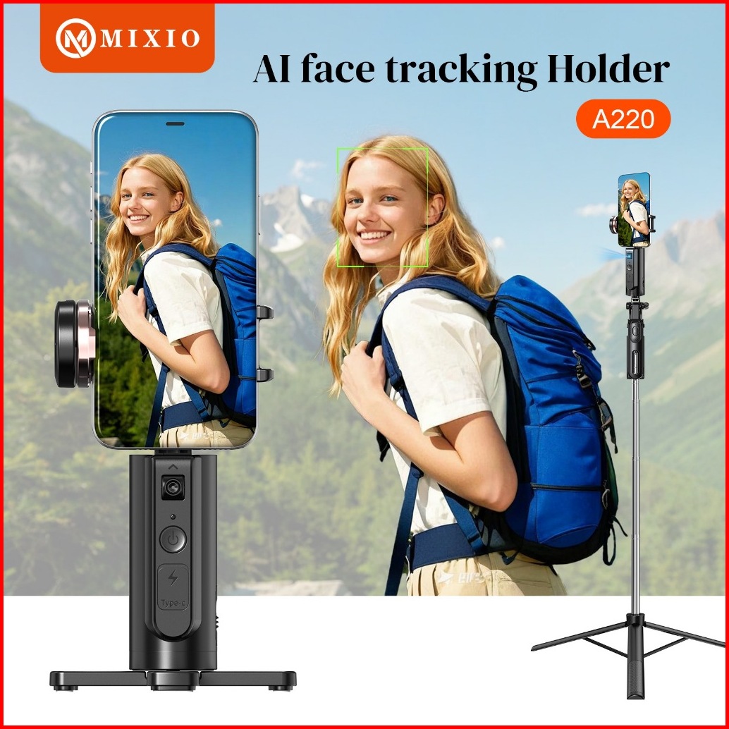 Mixio A220 Auto Face Tracking Gimbal Handphone Stabilizer 360 With Remote Bluetooth For Tripod Handphone Portable