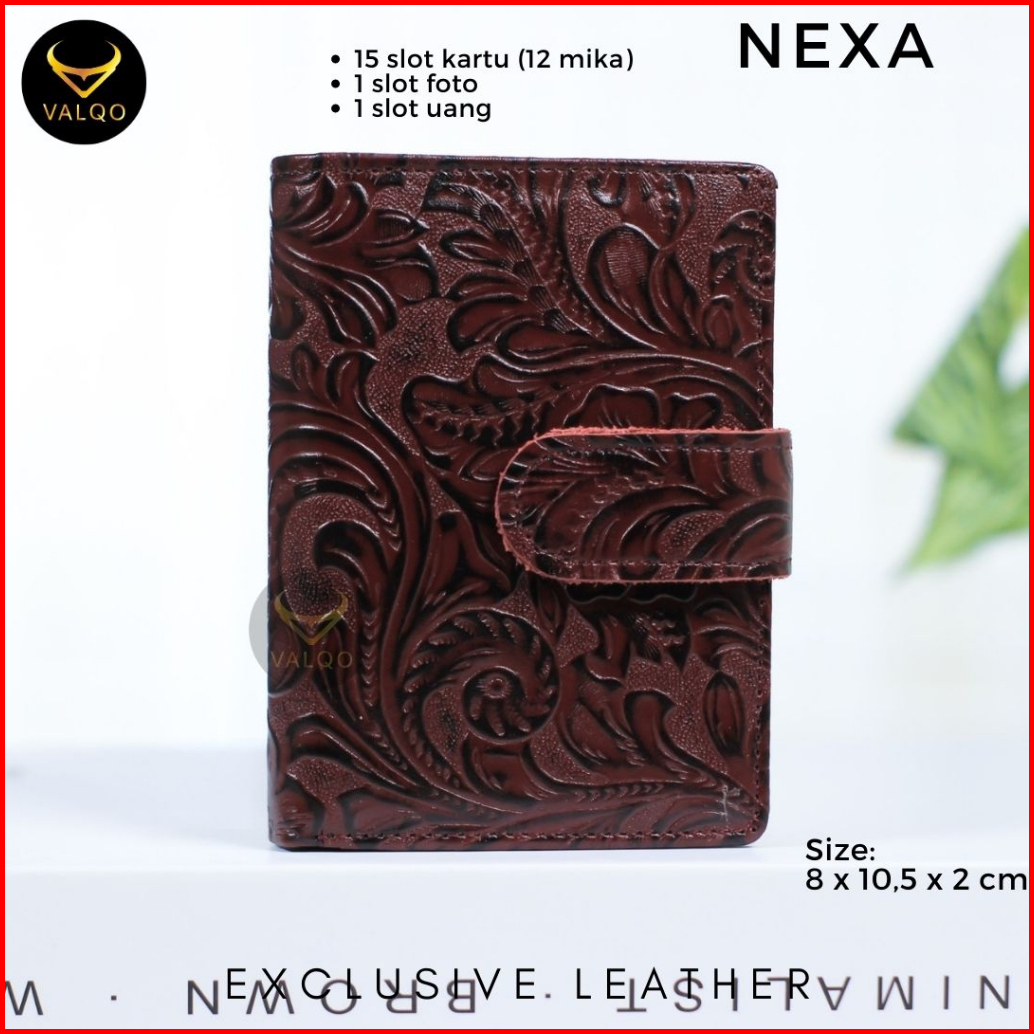 Valqo Nexa Motif Dompet Kartu Kulit Sapi Wanita Pria Dompet Kecil Dompet Mini