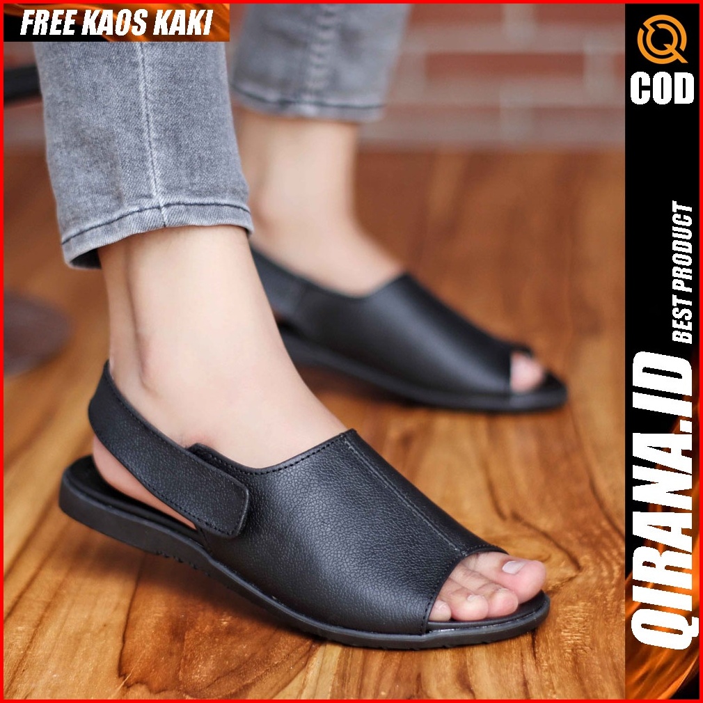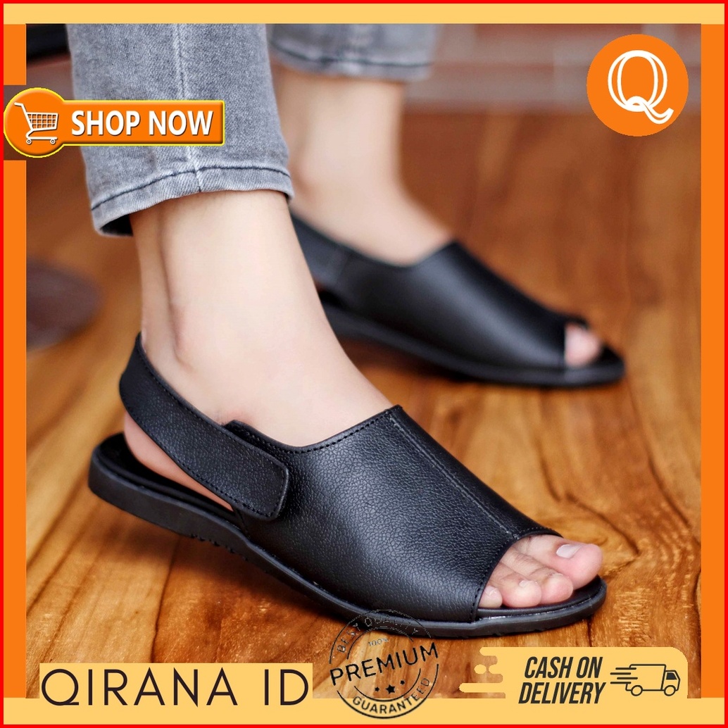 Qirana Diana Sandal Kulit Wanita Papirut Model Slop Tersimple Sndal Flat Teplek Cewe Asli Garut